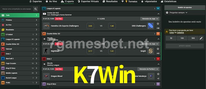 A aposta K7Win oferece aos jogadores a experiência mais conveniente de apostas em eSports!